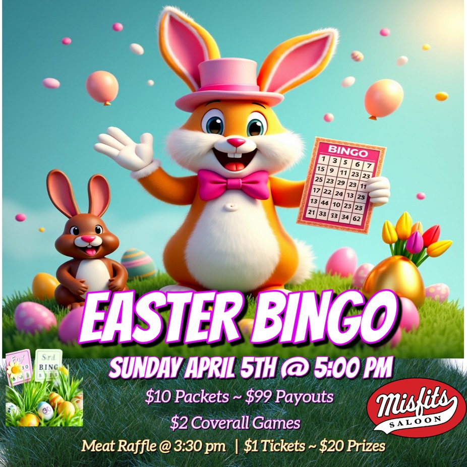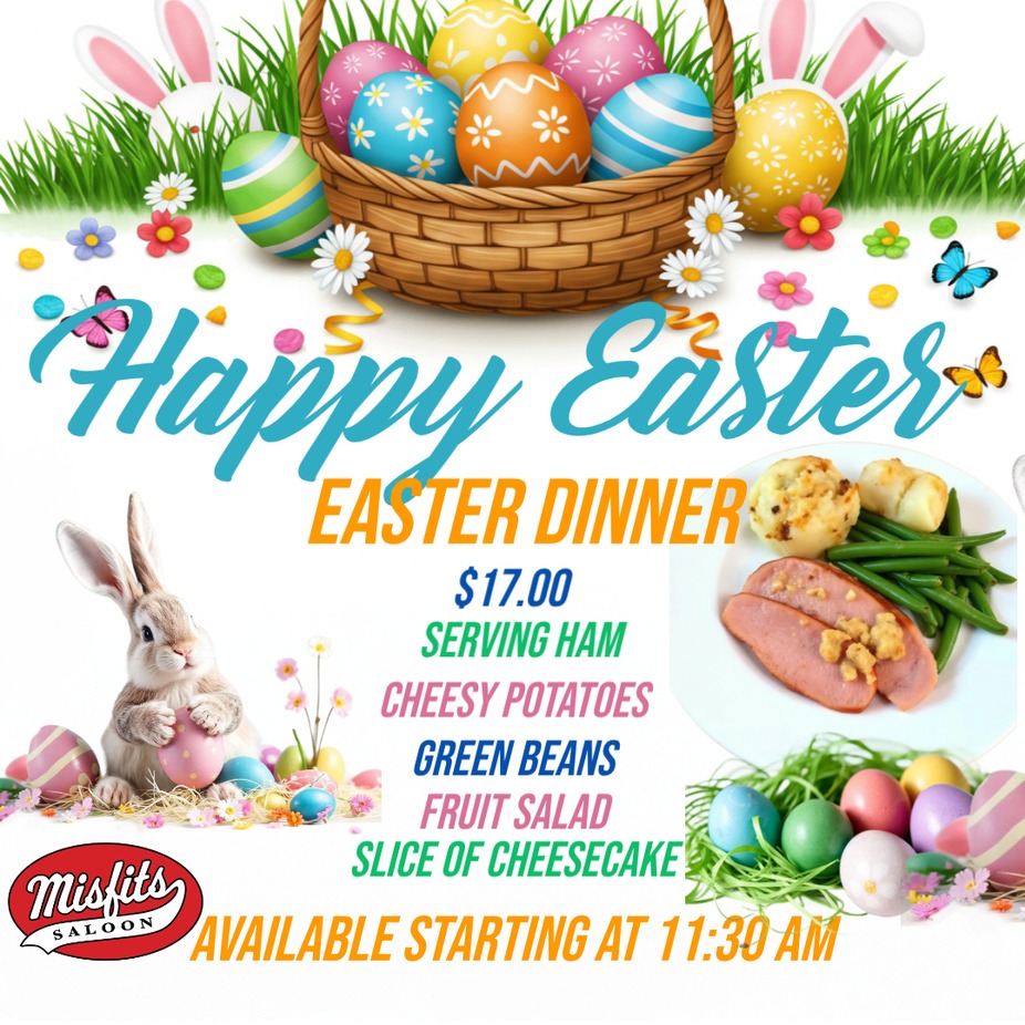 Don't want to cook? Come have Easter Dinner at Misfits Saloon. Dinner will be available starting at 11:30 am